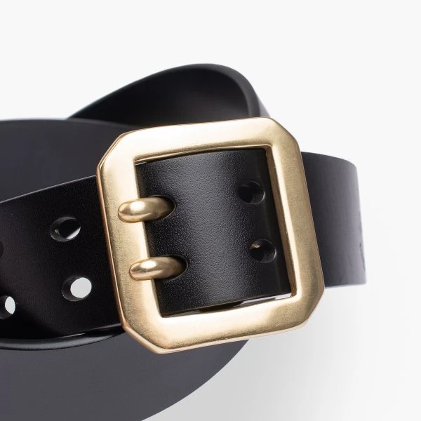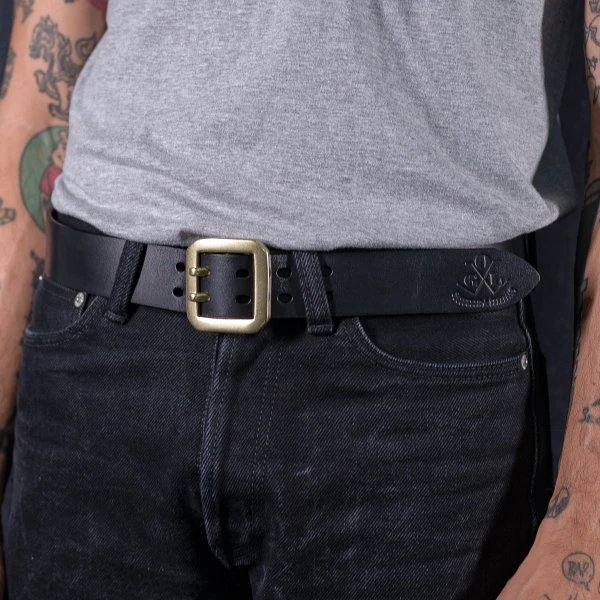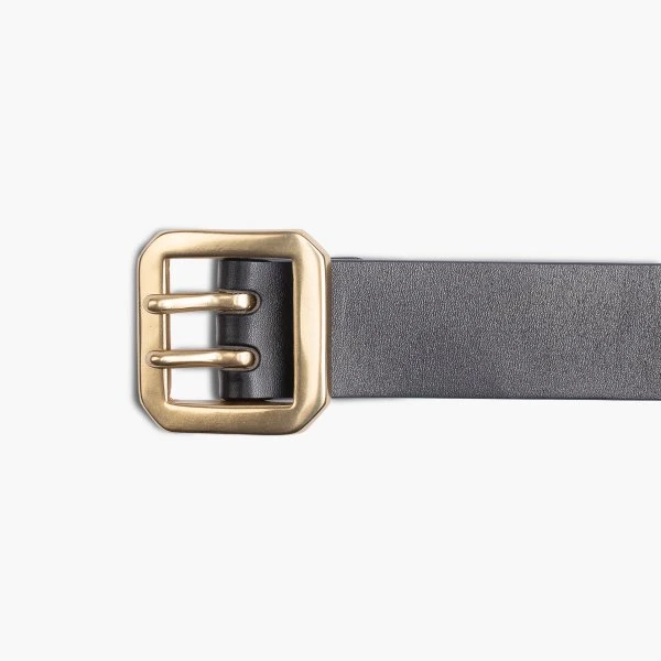 - Solid brass garrison buckle with a double prong that will form a natural aging patina