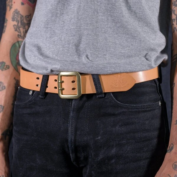 - Solid brass garrison buckle with a double prong that will form a natural aging patina