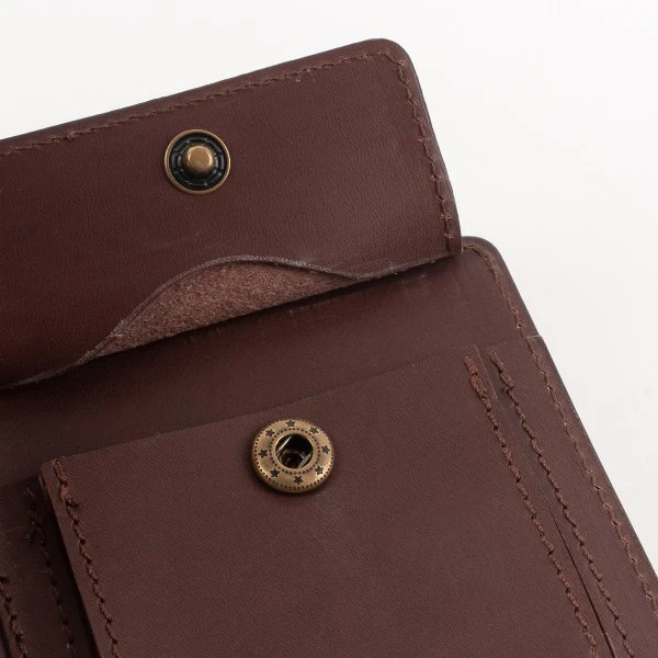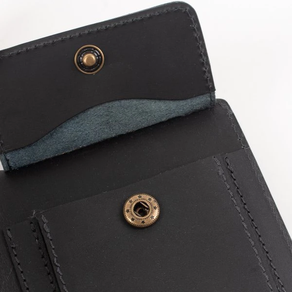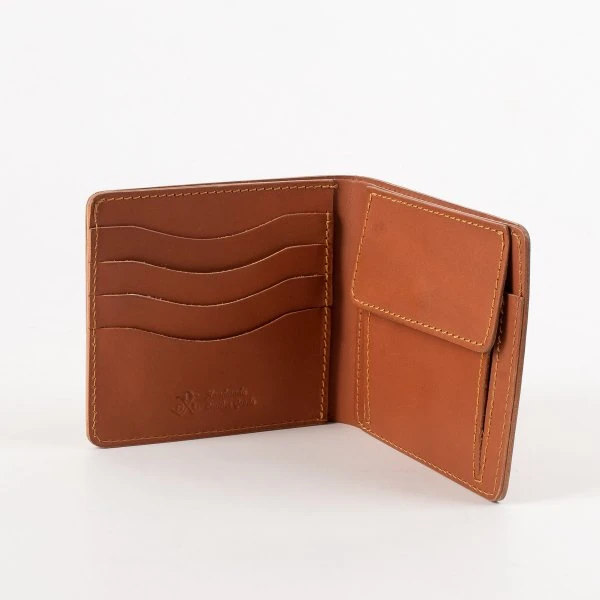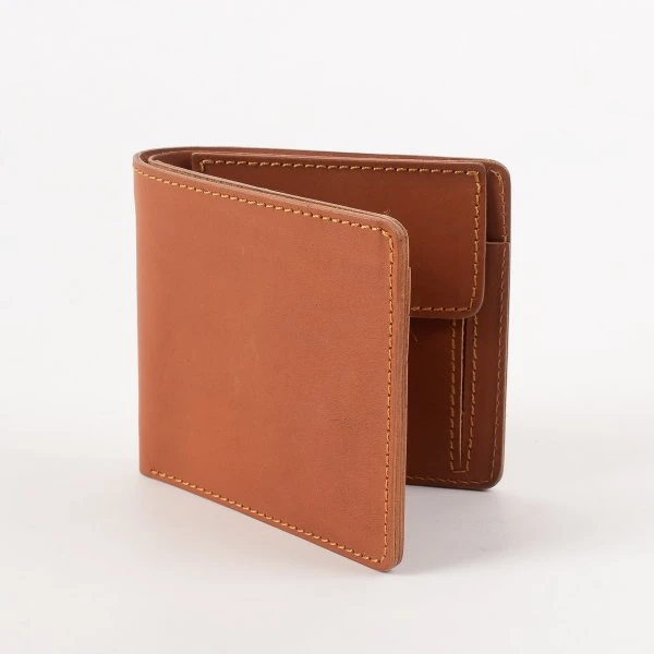 Classic bi-fold leather wallet with coin compartment, handmade by our good friends Obbi Good Label in Singapore. Constructed from full-grain Japanese Tochigi vegetable-tanned cowhide leather. A traditional design with hand-carved card slots, snap-fastened coin compartment, and hand-burnished edging.