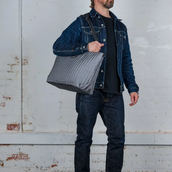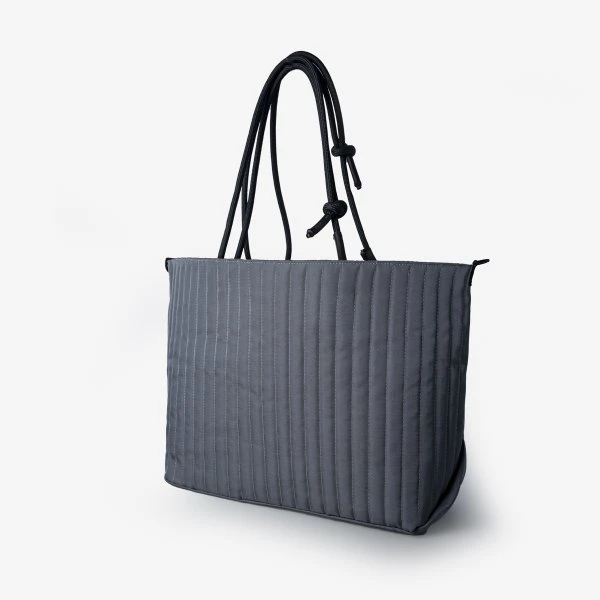 - Silver quilted canvas exterior
