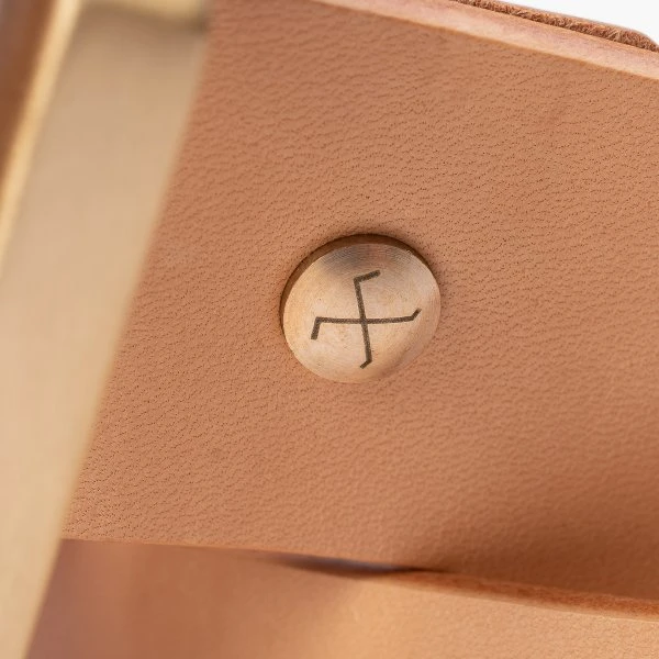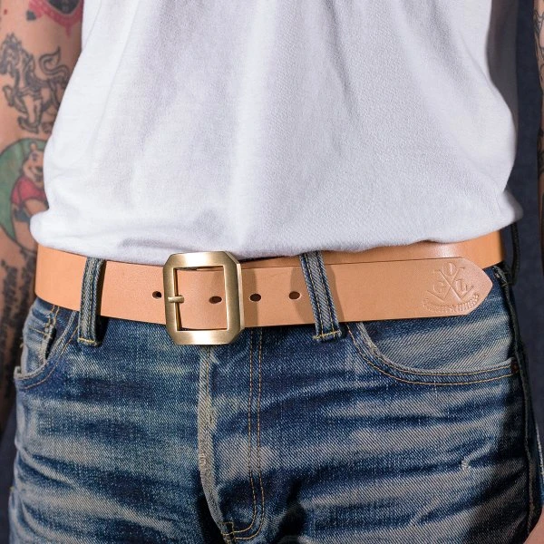 - Solid brass garrison buckle with a single prong that will form a natural aging patina