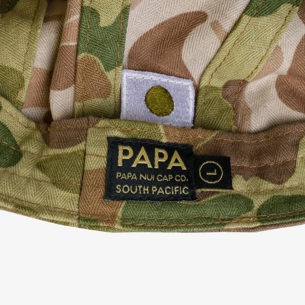 Named in honour of the F6F fighter plane, the “Hellcat” is a design that John Terosoriero (owner of Papa Nui) has been refining since the release of the original “Corsair” cap over a decade ago. Taking inspiration from 1940s-style aviator caps, this rugged hat is deep and balanced through the crown so as not to create a pinch at the top. The visor is 8cm (3 1/4”) long, with a wide, square shape taken directly from the USN caps of the era. Constructed from herringbone shelter cloth, the authentic Frogskin camo is based on the original M1942 pattern, notable as being the US military’s first attempt at disruptive colouration camouflage. Â