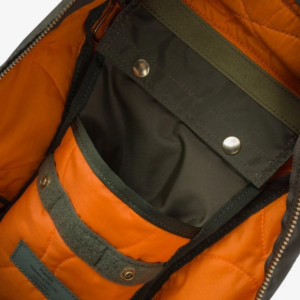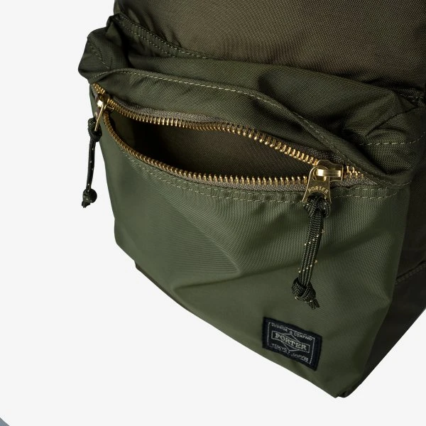The Porter Force series focuses on making military themed bags emulating the difference in materials and specific colours found in classic military equipment. In this case the biggest feature is that there is a subtle colour difference between the fabric of the front pocket and the fabric of the bag itself.Â