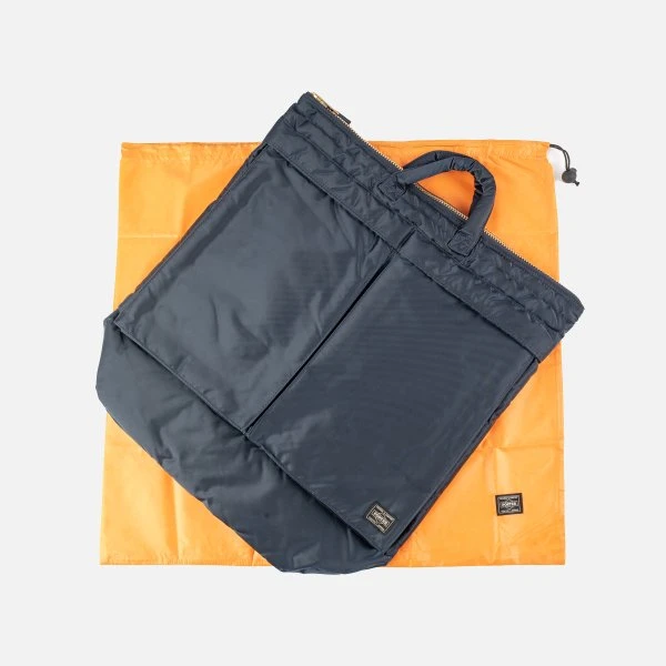 The 2Way Helmet Bag is one of the most functional models from the Porter range, its large main compartment secured by a heavyweight brass zip offers ample storage for bigger items. Internally housed are two large sleeve pockets and a removable transparent document sleeve. Features also include two full-length snap and Velcro® fastened pockets on the front of the bag, padded hand carry handles, and an adjustable crossbody strap.