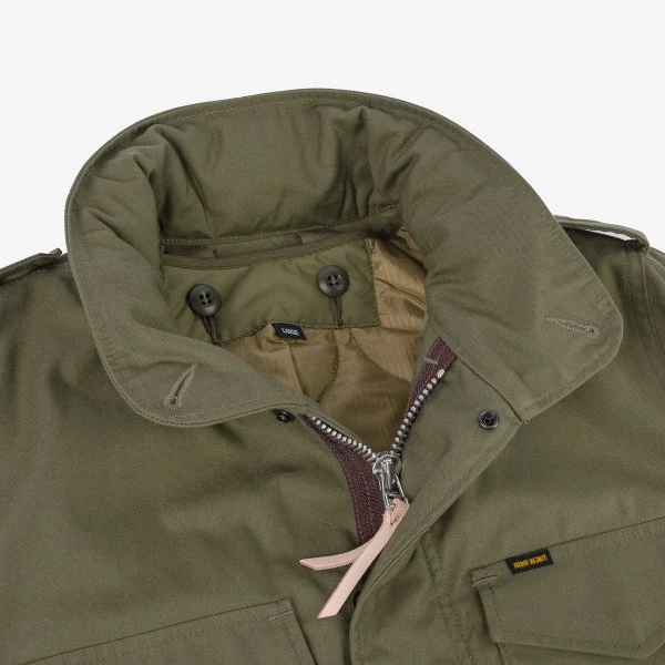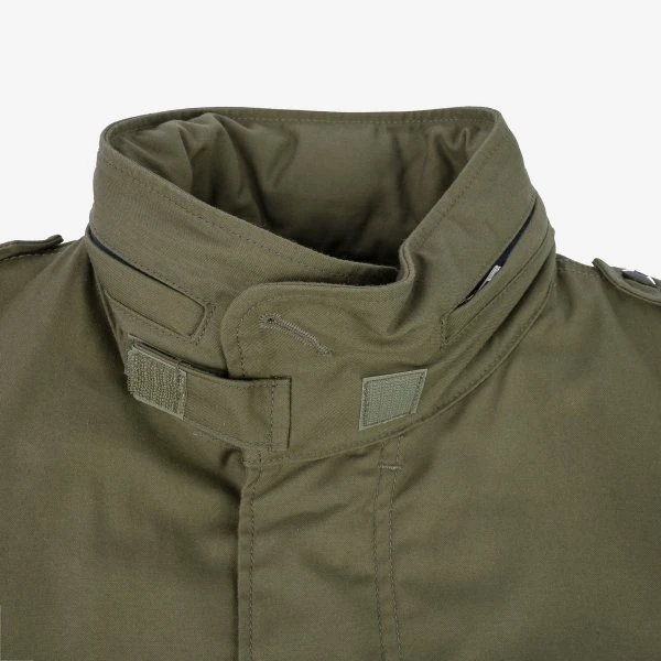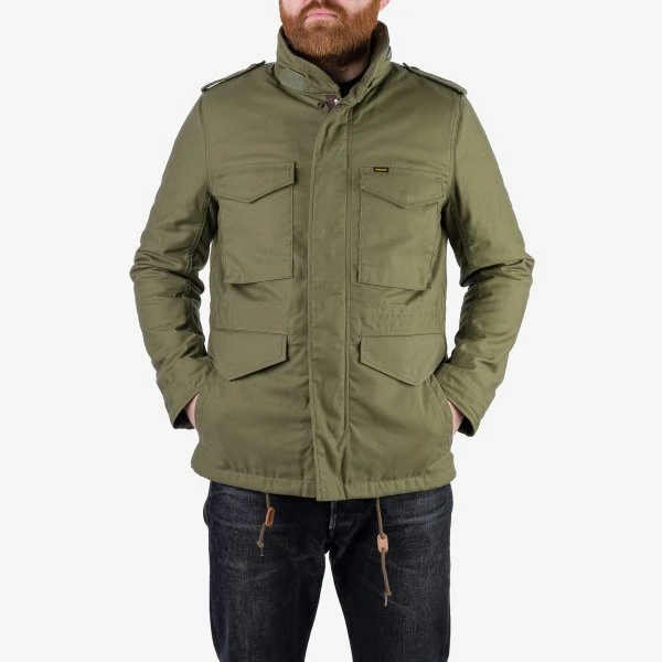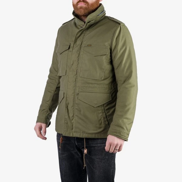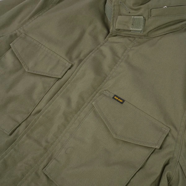 Initially introduced into the US military in 1965, the M65 Jacket was designed as a cold weather field coat, which has since become a firm civilian favourite after appearing in movies such as Taxi Driver and Terminator. This Iron Heart take on the classic M65 remains true to the original, including four front pockets and a stand-up collar with built-in hood – but with the addition of useful side hand-warmers and an internal pocket for more secure storage. Designed for durability, versatility and warmth, for this season we have used a tough 8oz 50/50 cotton/nylon blend shell, with a polyester filled, quilted nylon lining providing an extra layer of insulation during the colder months. The padded lining is easily removable, allowing for more year-round use in the milder seasons.