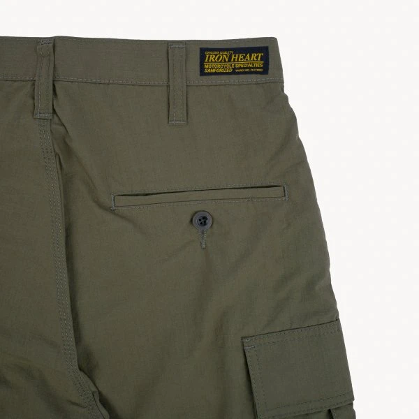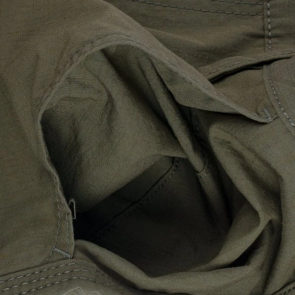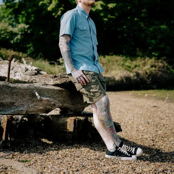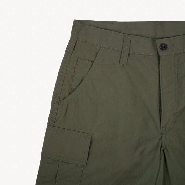 Our 6-pocket cargo shorts, made from 7oz polycotton, hydrophobic ripstop fabric. Commonly utilised in outdoor clothing where function is preferred over style, ripstop offers excellent hydrophobic properties and is highly durable, woven with a pattern of reinforced squares which prevent the fabric from tearing. Slightly shorter than a traditional cargo cut, these shorts are lightweight and very breathable, with the ripstop’s hydrophobic coating means that they’re also water resistant and very quick to dry. Add to this button-fastened rear pockets, two large cargo pouches and a Universal brass zipper fly, and the result is an incredibly comfortable, versatile pair of shorts for the summer.
