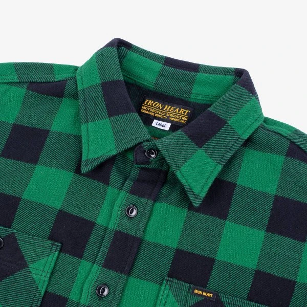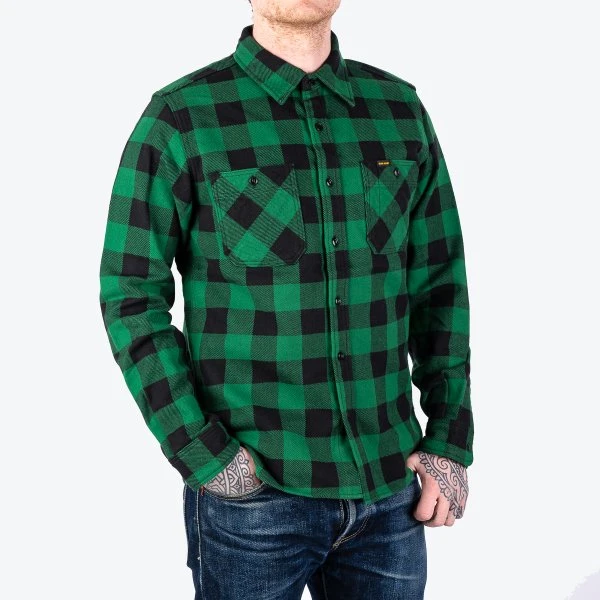 - 12oz Japanese ultra-heavyweight flannel – Green/black buffalo check
