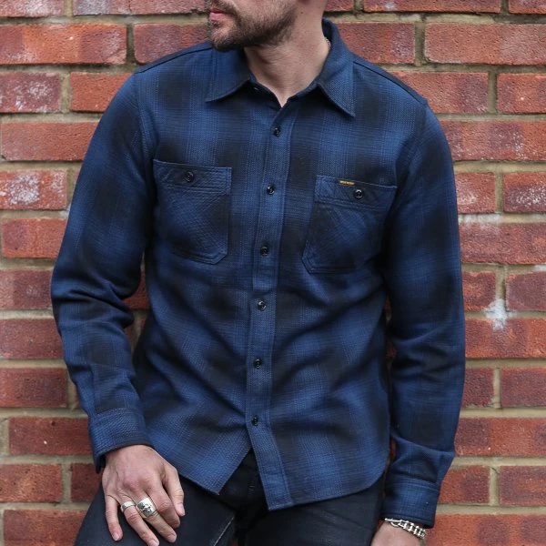- 12oz Japanese ultra-heavyweight flannel – Navy/black ombré check