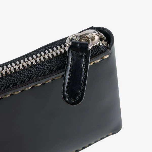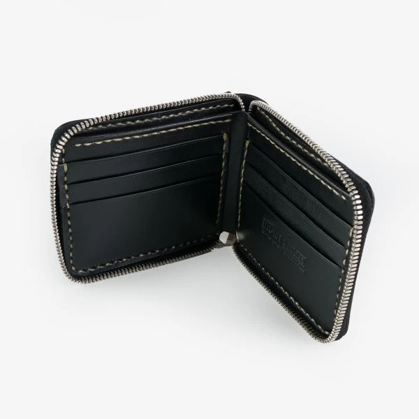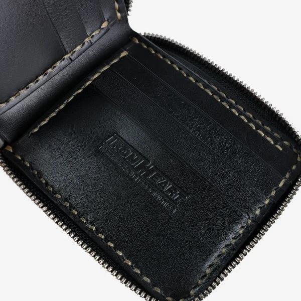 Super smooth and highly durable Shell Cordovan wallet with hand-sewn goat tendon stitching, cowhide leather interior, six card slots, and banknote section. The streamlined design ensures maximum comfort when stored in the back pocket of slim cut jeans. Finished with debossed Iron Heart Motorcycle Specialties and heavyweight YKK zipper.